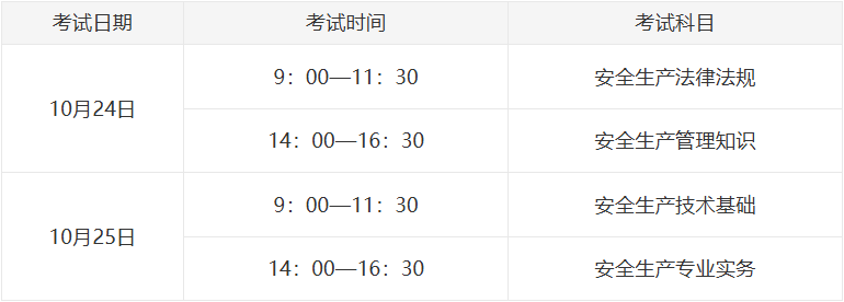 2026年中級(jí)注冊(cè)安全工程師考試時(shí)間已公布,為10月24日、25日。