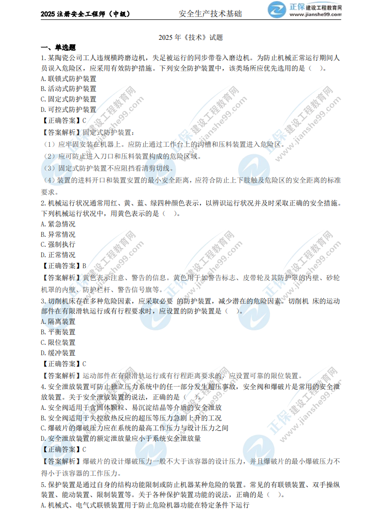 2025年中級(jí)安全工程師《生產(chǎn)技術(shù)》考試結(jié)束,考生們最關(guān)心的肯定是這一科目試題及答案。建設(shè)工程教育網(wǎng)考后會(huì)依據(jù)考生反饋,及時(shí)匯總中級(jí)安全工程師《生產(chǎn)技術(shù)》的試題及答案,期望能給各位考生提供幫助!