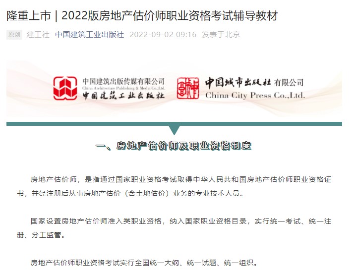 中國建筑工業(yè)出版社發(fā)表了文章,2022版房估輔導(dǎo)教材上市了!