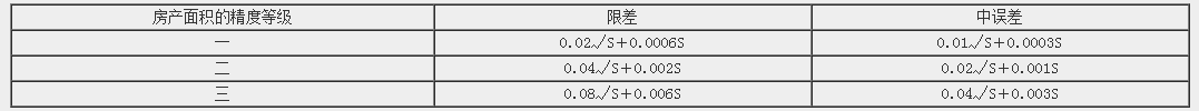 房產(chǎn)面積的精度要求(單位:m2)