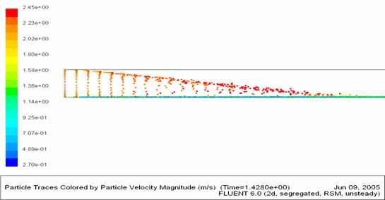 本計算塵粒從通道入口噴入,速度與氣流速度相同