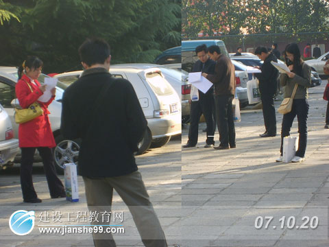 今天(2007年10月20日),2007年全國造價工程師考試如期舉行,北京各考點的考生早早地來到考點,復習準備著考試。建設(shè)工程教育網(wǎng)記者也奔赴各考點,進行追蹤報道。