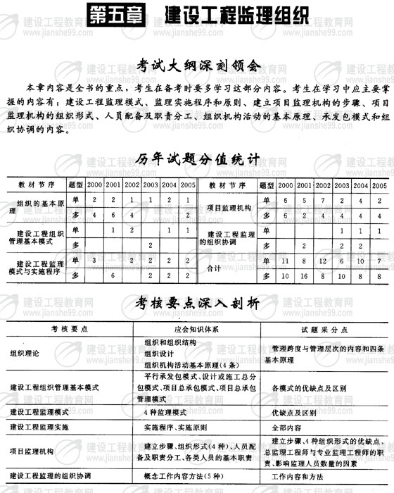 監(jiān)理工程師《監(jiān)理概論》第五章考情分析