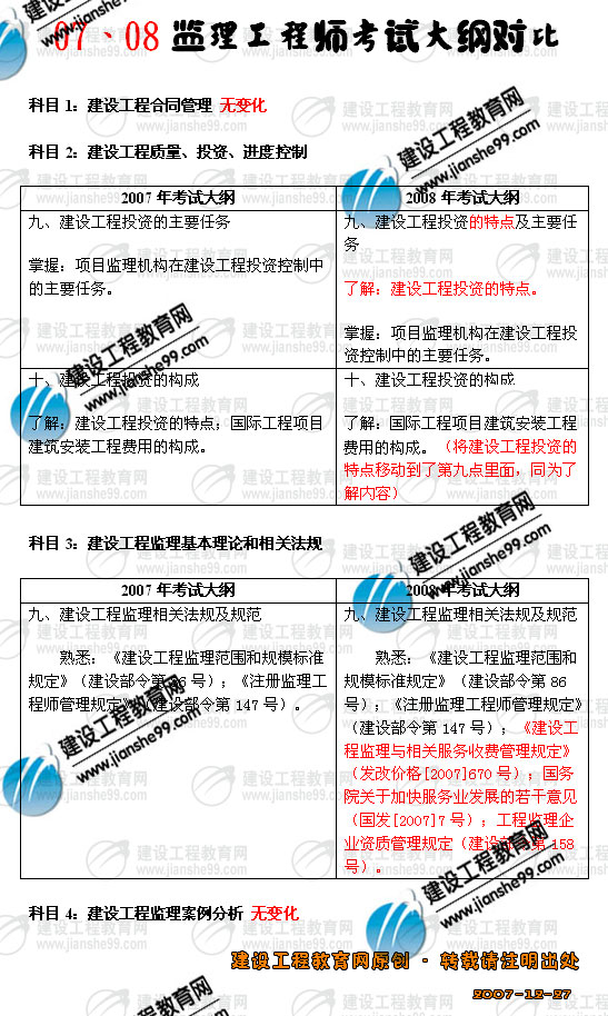 07年、08年注冊(cè)監(jiān)理工程師考試大綱對(duì)比