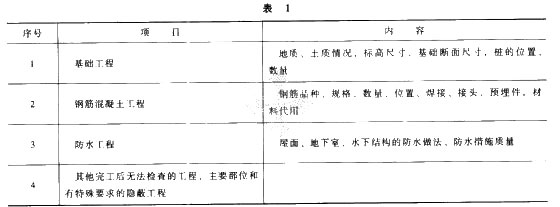 2)隱蔽工程驗收的主要項目及內(nèi)容(表1):