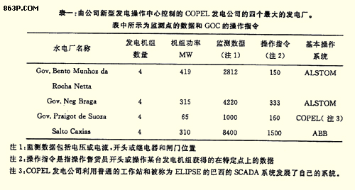 通過(guò)6年的籌劃、技術(shù)研究和發(fā)展,在2000年末,COPEL發(fā)電公司開(kāi)始用最新的發(fā)電操作中心控制它的最大的水電廠(chǎng),這個(gè)發(fā)電廠(chǎng)位于Parana州首府的公司總部。在巴西還沒(méi)有用一個(gè)單獨(dú)的控制室控制一組重要的發(fā)電廠(chǎng)的先例。