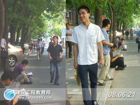 今年的北京,下過幾場大雨,所以夏天比往年要來得晚一些。但是經(jīng)歷了昨天的悶熱天氣之后,今年我們迎來了一個艷陽高照的日子。今天是夏至,最高氣溫32度,但是早上的北京還沒有那么的炎熱,考生們也都個個精神抖擻,信心百倍,通過我們的采訪也看得出考生的心情非常好。早上9點開始考試,考生們7點多就已經(jīng)在門口等待。今年的考試管理非常嚴(yán)格,考生需提前一個小時持準(zhǔn)考證入場。為了趕早和考生交流,建設(shè)工程教育網(wǎng)記者早早來到位于德勝門外的北京市電子信息學(xué)校的考點,看到考生們在交流和進(jìn)行最后的沖刺準(zhǔn)備,看得出來大家對這次的考試信心很足。8點40,考生們陸續(xù)走進(jìn)考場,一路走來,談笑風(fēng)聲,好象大家都忘記了今天要考試,也許是大家都復(fù)習(xí)得很到位的原因。通過網(wǎng)校記者和學(xué)員們的交流,發(fā)現(xiàn)大家對二級建造師的考試的熱情非常高,而且對考試也很有把握,今年二級建造師的教材和大綱基本沒有變動,學(xué)員們的備考也很充分,對這次考試信心十足,在記者的祝福下,考生們也面帶笑容地步入考場。與此同時,大部分考生還非常感謝建設(shè)工程教育網(wǎng)的輔導(dǎo),覺得輔導(dǎo)對自己幫助很大,增加了通過的信心,身為網(wǎng)校一員的記者,自己也為他們感到高興,看著他們遠(yuǎn)去的背影,默默地為他們送去祝福,愿他們“旗開得勝,馬到成功!”
