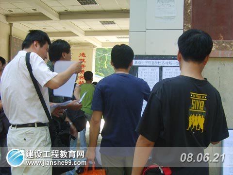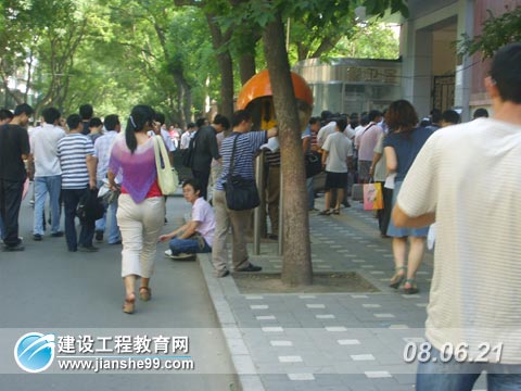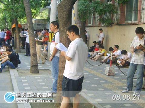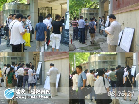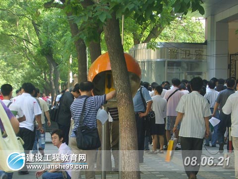 建設(shè)工程教育網(wǎng)6月21日訊 今天(2008年6月21日),2008年全國二級建造師考試如期舉行(除四川延考外),這是本年度建筑類上半年考試中的最后一類,而且二級建造師的從業(yè)人群是非常多,地震的發(fā)生,對工程質(zhì)量的把關(guān)更加嚴(yán)格,所以獲得執(zhí)業(yè)資格尤為重要。考試在9點準(zhǔn)時舉行,各個考點外已經(jīng)站滿了考生,有的在考點外和同考的人互相交流著,有的考生則在考點外進(jìn)行最后的沖刺準(zhǔn)備,建設(shè)工程教育網(wǎng)記者也奔赴各考點,進(jìn)行追蹤報道。