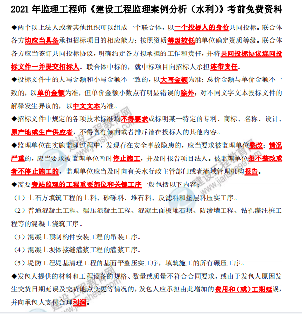 2021年監(jiān)理工程師水利案例考前三頁(yè)紙