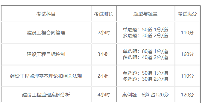 3、監(jiān)理工程師考試題型題量