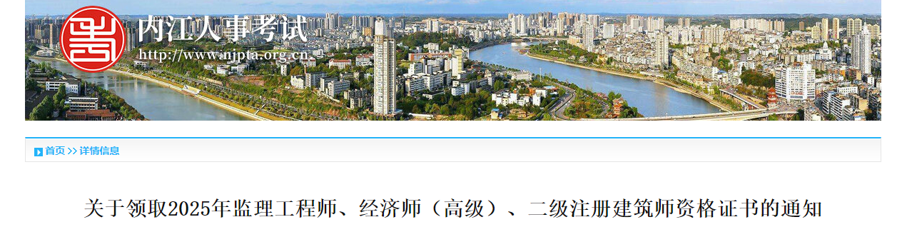 四川省內(nèi)江市2025年監(jiān)理工程師證書領(lǐng)取通知