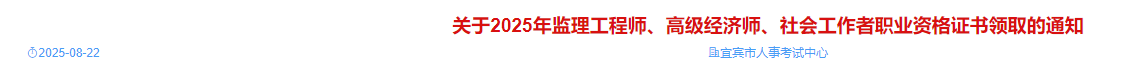 四川宜賓考點(diǎn)2025年監(jiān)理工程師證書領(lǐng)取通知已發(fā)布,詳情如下: