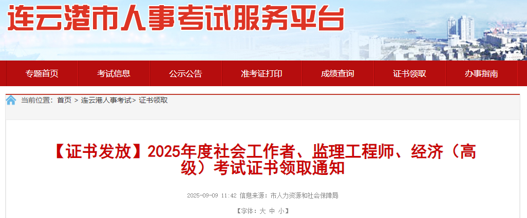 2025年度社會工作者、監(jiān)理工程師、經(jīng)濟(高級)考試證書領(lǐng)取通知