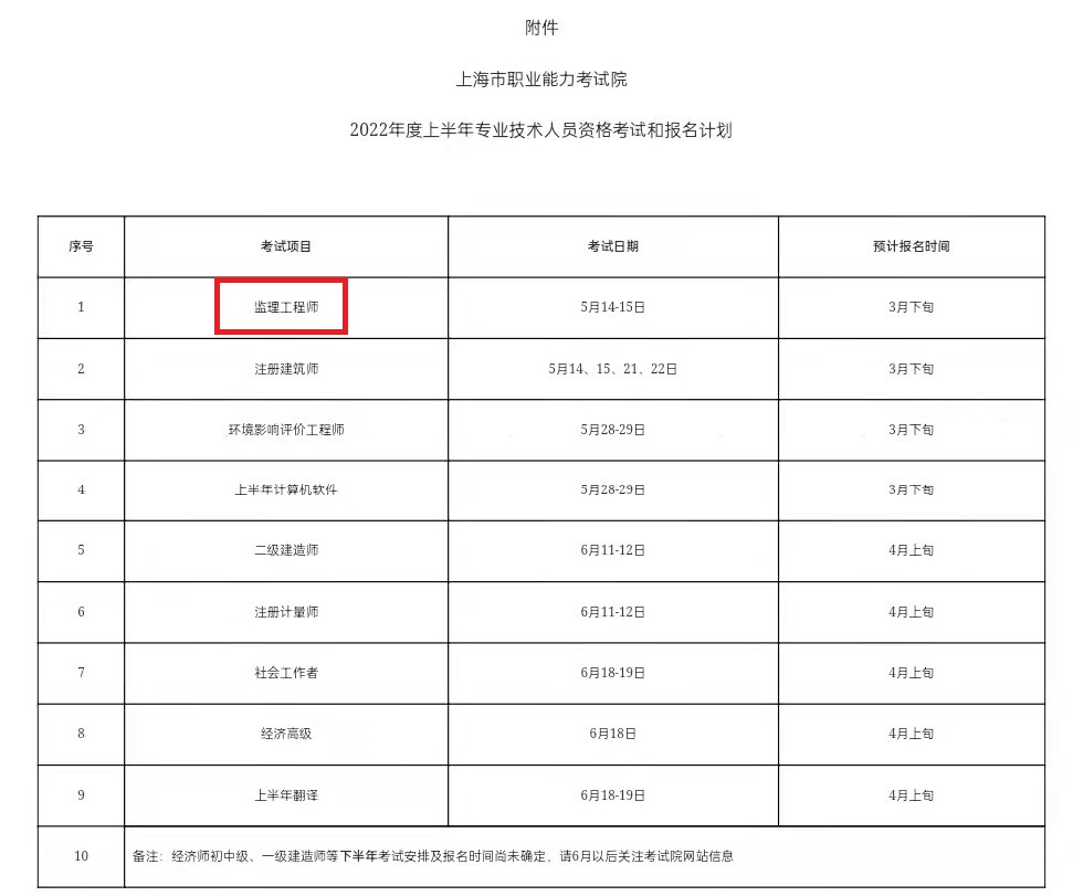 上海市2022年監(jiān)理工程師考試落實疫情防控有關(guān)要求的通知