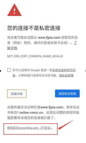 近期有考生反映:在使用本網(wǎng)站主觀題成績核查、證書郵寄等功能時,無法正常訪問,IE瀏覽器提示403錯誤,谷歌瀏覽器提示“您的連接不是私密連接”等情況。經(jīng)排查,發(fā)現(xiàn)是考生使用中國移動的網(wǎng)絡(luò)(包括4G/5G)無法訪問。為保護(hù)廣大考生的信息安全,若在訪問本網(wǎng)站過程中發(fā)現(xiàn)類似下圖錯誤提示時,請立即暫停訪問,建議使用中國電信或中國聯(lián)通網(wǎng)絡(luò)訪問本網(wǎng)站。