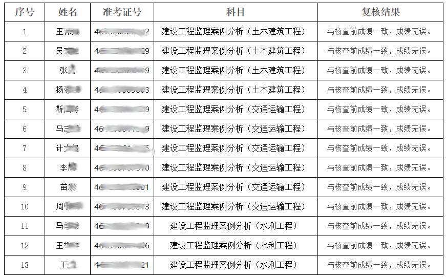 根據(jù)有關(guān)規(guī)定,陜西省人事考試中心依程序受理我省2021年度監(jiān)理工程師執(zhí)業(yè)資格考試主觀題成績(jī)復(fù)核申請(qǐng)。經(jīng)人社部人事考試中心等核查,現(xiàn)將復(fù)核情況公告如下: