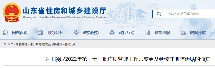 山東領(lǐng)取2022年第三十一批注冊監(jiān)理工程師變更及延續(xù)注冊防偽貼的通知