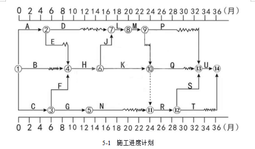 某工程項目,建設(shè)單位與施工單位按照《建設(shè)工程施工合同(示范文本)》簽訂施工合同,工期36個月。施工進度計劃見下圖。