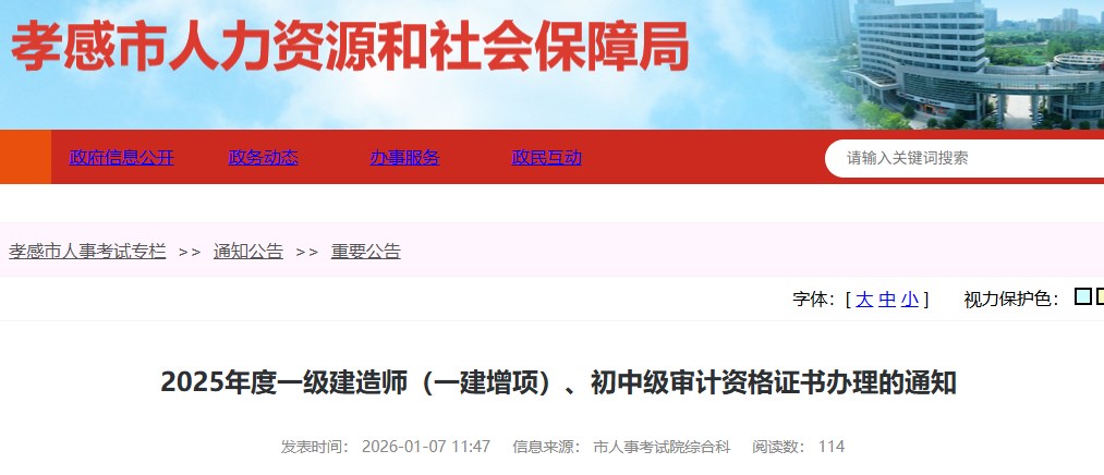 孝感市人力資源和社會保障局發(fā)布2025年度一級建造師(一建增項)、初中級審計資格證書辦理的通知,具體信息如下: