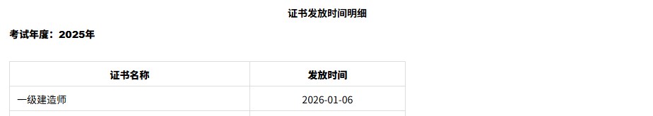 摘要:成都市人力資源和社會(huì)保障局發(fā)布成都市專業(yè)技術(shù)資格證書發(fā)放情況,2025年一級(jí)建造師證書于2026.1.6日正式發(fā)放,具體信息如下: