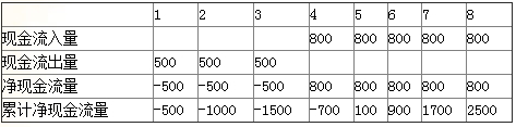 某建設(shè)項目,第1-3年每年年末投入建設(shè)資金500萬元,第4-8年每年年末獲得利潤800萬元,則該項目的靜態(tài)投資回收期為()年。
