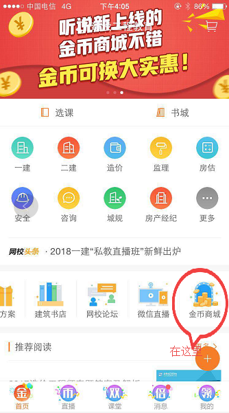 去哪里能看到金幣商城?首先你需要下載并安裝“建設(shè)工程教育網(wǎng)新版APP”(掃描如下二維碼下載),需要版本。