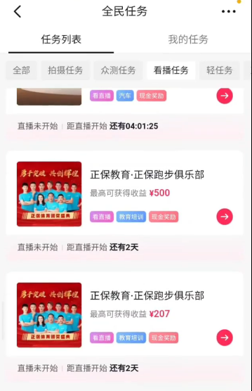 3.在“看播任務(wù)”里找到“正保教育·正保跑步俱樂部”,點(diǎn)擊箭頭進(jìn)入