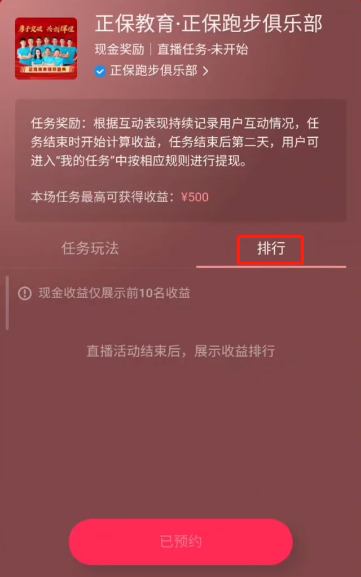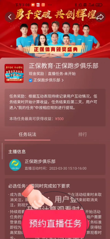 4.進(jìn)入“正保教育·正保跑步俱樂部”點(diǎn)擊下方“預(yù)約直播任務(wù)”