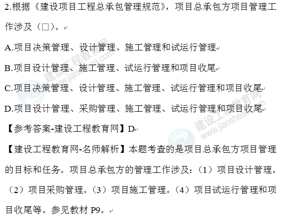 2021年一級(jí)建造師已經(jīng)陸續(xù)開始報(bào)名,考生們也在緊張的備考中。一級(jí)建造師備考除了吃透教材外,做一做歷年試題也是備考路上必不可少的一步,建設(shè)工程教育網(wǎng)為大家整理了2020年一級(jí)建造師《建設(shè)工程項(xiàng)目管理》的一些試題,希望對(duì)大家有所幫助!