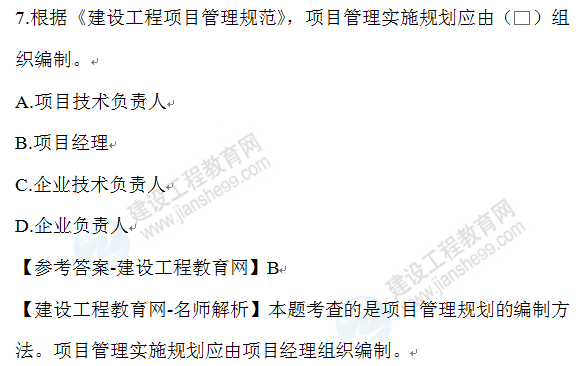 2021年一級建造師已經(jīng)陸續(xù)開始報名,考生們也在緊張的備考中。一級建造師備考除了吃透教材外,做一做歷年試題也是備考路上必不可少的一步,建設(shè)工程教育網(wǎng)為大家整理了2020年一級建造師《建設(shè)工程項目管理》的一些試題,希望對大家有所幫助!