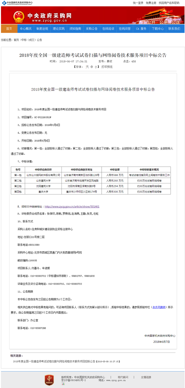 2018年全國一級建造師考試試卷掃描與網(wǎng)絡閱卷技術服務項目中標公告