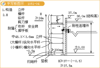 【提問】老師在講腳手架“掃地桿”的時候說“掃地桿距地面距離不應大于200mm”但是此圖上標注的是大橫桿距墊板上部的距離不大于20mm,以哪個為準,教材中有相關內容嗎?謝謝!