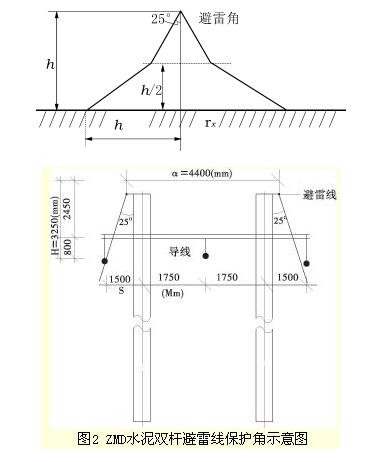 保護(hù)角是通過(guò)地線的垂直平面與通過(guò)地線和被保護(hù)受雷擊的導(dǎo)線的平面之間的夾角。