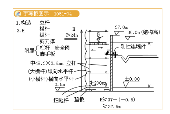 【提問】老師在講腳手架“掃地桿”的時候說“掃地桿距地面距離不應大于200mm”但是此圖上標注的是大橫桿距墊板上部的距離不大于20mm,以哪個為準,教材中有相關內容嗎?謝謝!