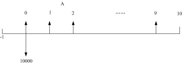 根據(jù)上圖可知,需要將10000元現(xiàn)金折算到-1年初,然后再按照已知現(xiàn)值求年值的公式計(jì)算。