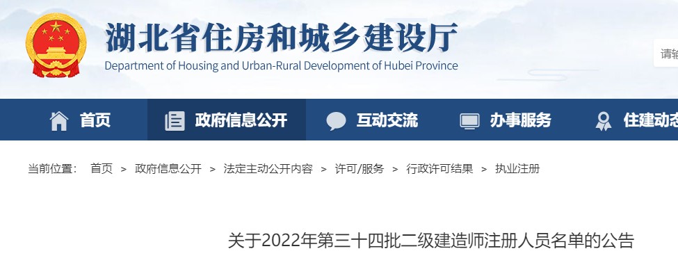 湖北關(guān)于2022年第三十四批二級建造師注冊人員名單的公告