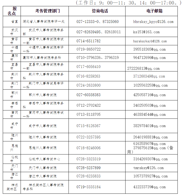 湖北省人事考試機(jī)構(gòu)咨詢電話及電子郵箱