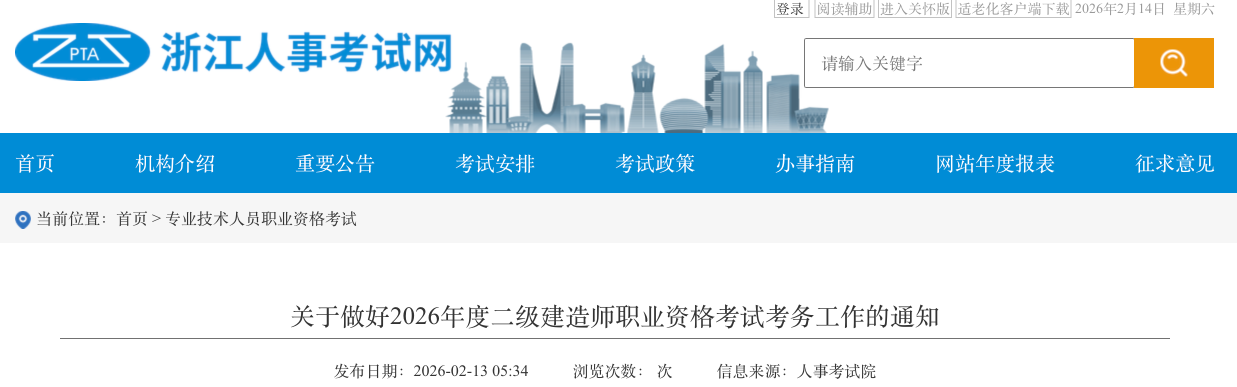 浙江發(fā)布關(guān)于做好2026年度二級(jí)建造師職業(yè)資格考試考務(wù)工作的通知