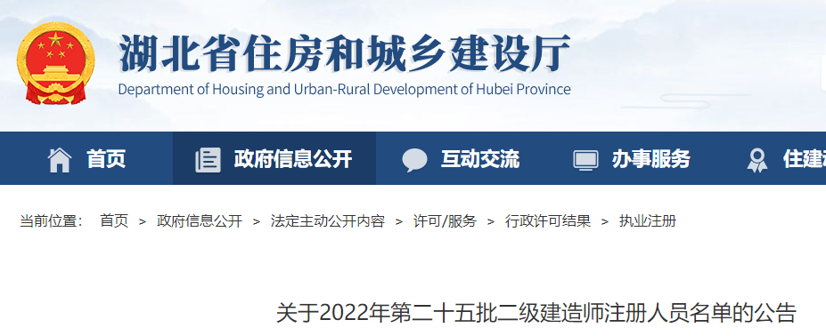 湖北關(guān)于2022年第二十五批二級建造師注冊人員名單的公告