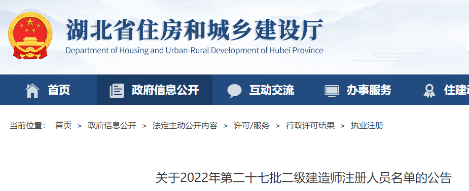 湖北關(guān)于2022年第二十七批二級建造師注冊人員名單的公告