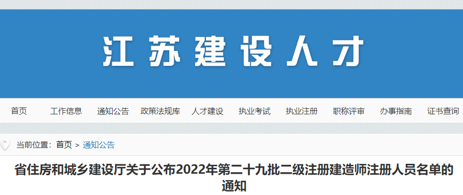 江蘇公布2022年第二十九批二級注冊建造師注冊人員名單的通知