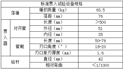 標(biāo)準(zhǔn)貫入試驗(yàn)的設(shè)備規(guī)格如下: