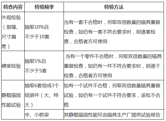 (一)檢驗(yàn)批:錨具不超過1000套;夾片不超過1000套;連接器不超過500套。