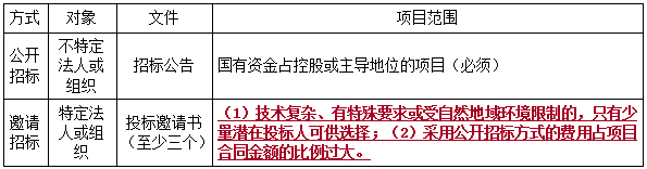 【注意】相關(guān)概念:必須招標(biāo)的項目(對應(yīng)可以不招標(biāo)的項目)、必須公開招標(biāo)的項目(對應(yīng)可以邀請招標(biāo)的項目)
