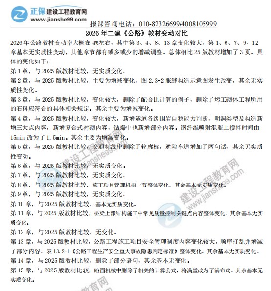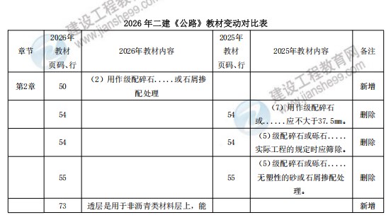 2026年二級建造師《公路實務(wù)》新教材變動梳理出爐!建設(shè)工程教育網(wǎng)教務(wù)團(tuán)隊拿到教材后第一時間為大家梳理變動詳細(xì)內(nèi)容,經(jīng)核對,2026年公路實務(wù)科目整體變動約4%,教材變動內(nèi)容如下,更多變動解讀請關(guān)注8月27日19:00聶旺老師直播間!