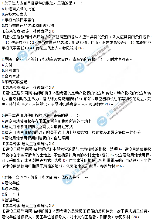 距2019年二級(jí)建造師考試結(jié)束已有近5個(gè)月的時(shí)間,但由于福建今年對(duì)二級(jí)建造師考試方式進(jìn)行了改革,所以目前還未舉行二級(jí)建造師考試。2019年福建二級(jí)建造師考試時(shí)間:11月9-10日、11月16-17日,共4天,具體考試時(shí)間請(qǐng)考生們以準(zhǔn)考證為準(zhǔn)??荚囋诩?,考生們是否想做一下試題呢?建設(shè)工程教育網(wǎng)為考生們分享了2019年其他地區(qū)二級(jí)建造師的一些試題及答案解析,供大家參考學(xué)習(xí)!