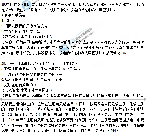 2019年二級(jí)建造師試題及答案解析-《法規(guī)》16-20題