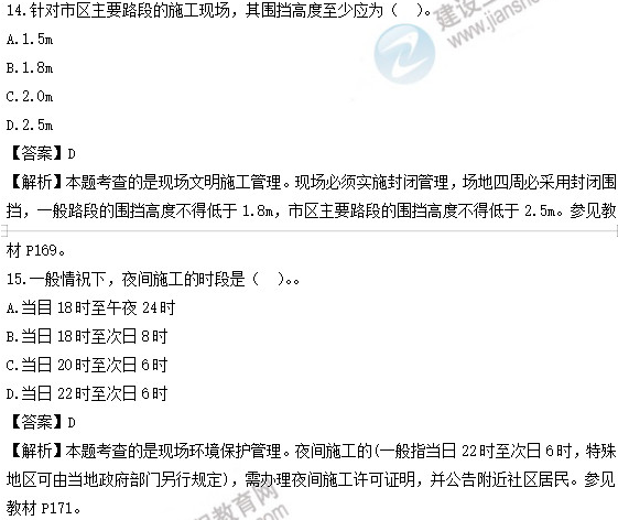 距2019年二級(jí)建造師考試結(jié)束已有近5個(gè)月的時(shí)間,但由于福建今年對(duì)二級(jí)建造師考試方式進(jìn)行了改革,所以目前還未舉行二級(jí)建造師考試。2019年福建二級(jí)建造師考試時(shí)間:11月9-10日、11月16-17日,共4天,具體考試時(shí)間請(qǐng)考生們以準(zhǔn)考證為準(zhǔn)??荚囋诩?,考生們是否想做一下試題呢?建設(shè)工程教育網(wǎng)為考生們分享了2019年其他地區(qū)二級(jí)建造師的一些試題及答案解析,供大家參考學(xué)習(xí)!