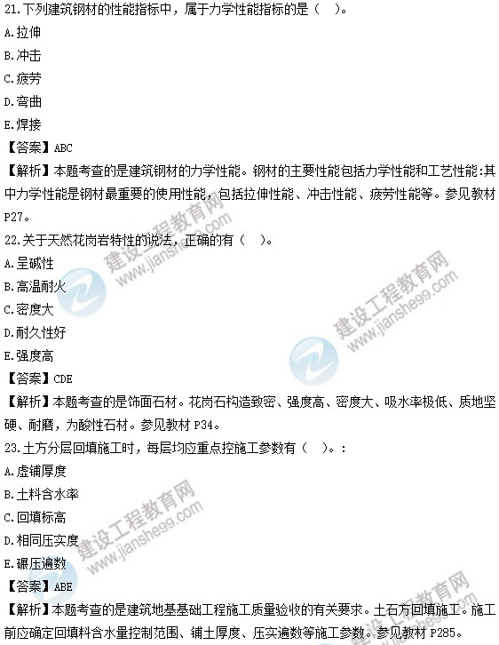 2019年二級(jí)建造師試題及答案解析-《建筑實(shí)務(wù)》21-25題