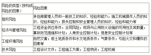 考點(diǎn):施工風(fēng)險(xiǎn)的類型及風(fēng)險(xiǎn)因素